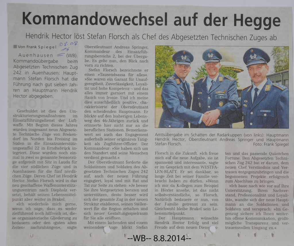 2014 - Presseartikel "Kommandowechsel in Auenhausen"
