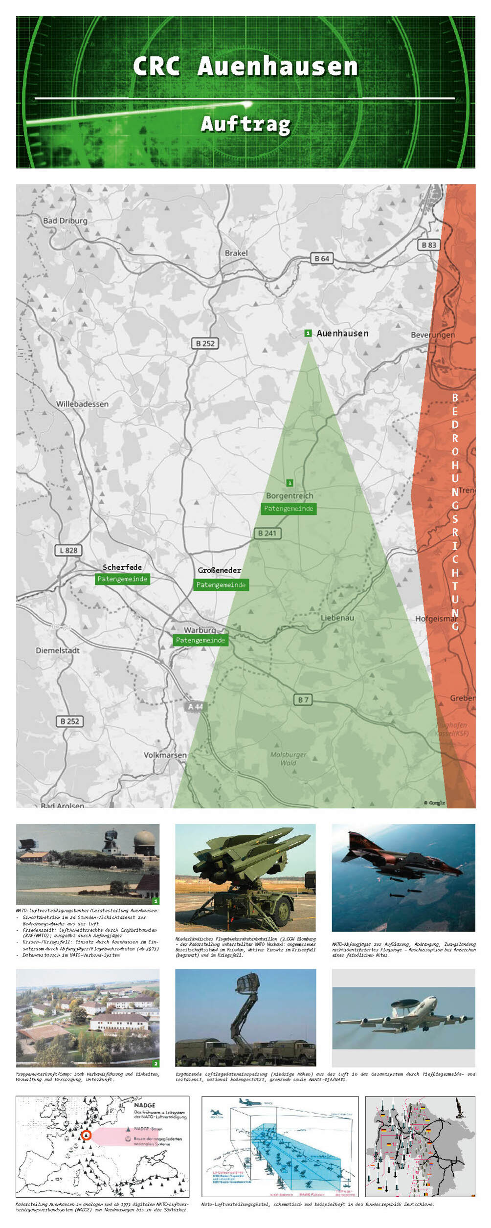 NATO-Luftverteidigungsbunker/Gerätestellung Auenhausen: - Einsatzbetrieb im 24 Stunden-/Schichtdienst zur Bedrohungsabwehr aus der Luft- Friedenszeit: Lufthoheitsrechte durch Großbritannien (RAF/NATO); ausgeübt durch Abfangjäger- Krisen-/Kriegsfall: Einsatz durch Auenhausen im Ein satzraum durch Abfangjäger/Flugabwehrraketen (ab 1971) - Datenaustausch im NATO-Verbund-System.